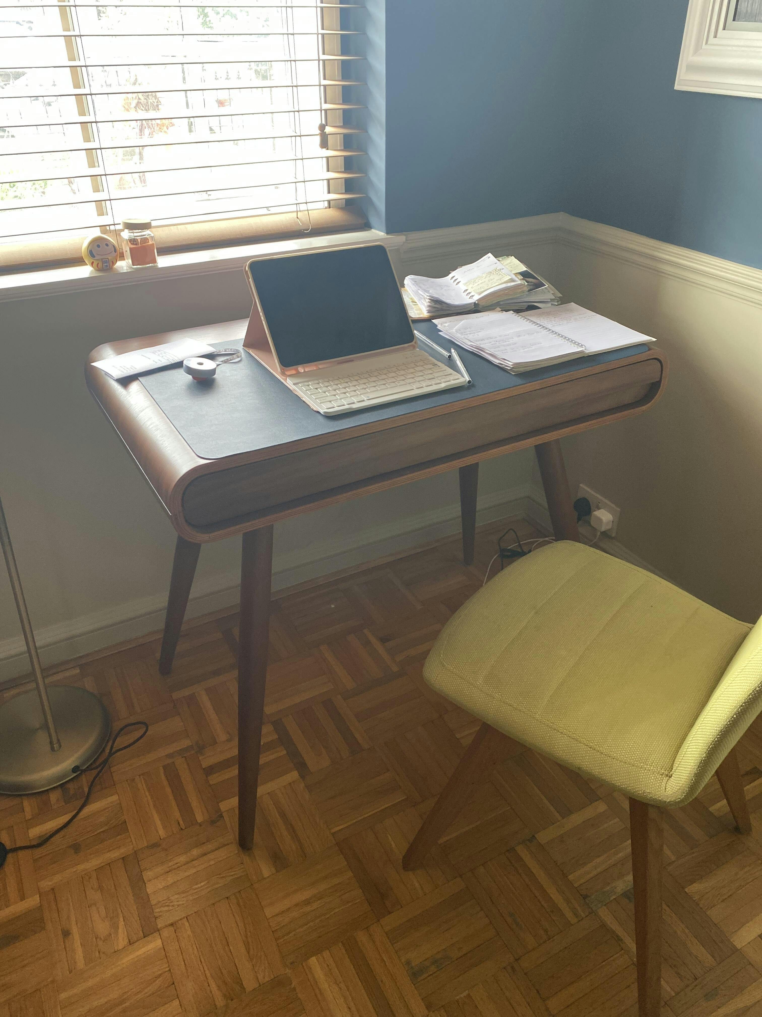 This desk is really beautiful. The design, the quality and the appearance of the finished product are very impressive. I love this desk and it looks super stylish in the corner of my living room. Couldn’t be happier! Still can’t believe the price for such a stunning piece.