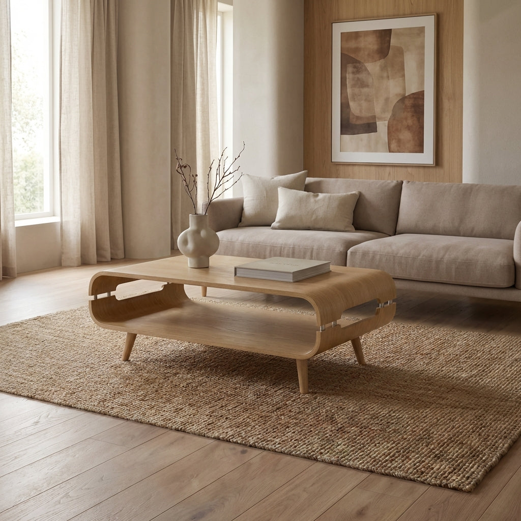 The Jual Curve JF703 Oak Coffee Table is a stunning piece of furniture - not only does it offer practicality, it also oozes sophistication and style. Boasting fabulously curved oak edges, this Coffee Table is a distinctive piece of furniture that will suit any room in the house. The ash spindle legs can be height adjusted to compensate for any uneven flooring.
