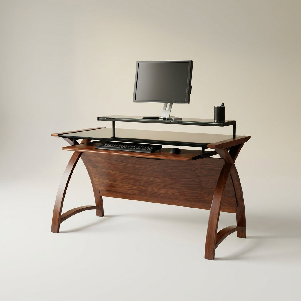 Part of the Jual Home Office Range, the popular PC201 Desks is designed featuring our curved wood process. The desk includes a large Sliding Keyboard Tray and Monitor Shelf. Modesty Panel supplied, fitting optional. To create stunning corner workstations purchase the matching PC201 Corner Connector and any of the PC201 desks or lap top tables.