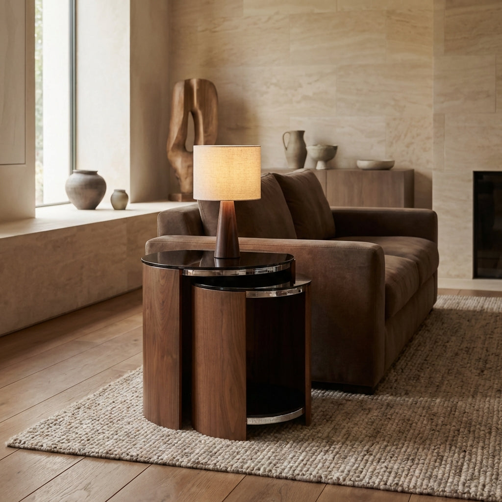 The Florence Walnut Nest of Tables brings sophisticated style and practical versatility to your home. This stunning two-piece set features: