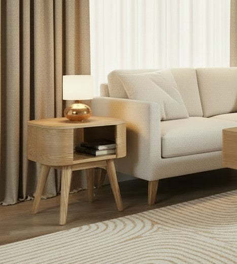 The sleek, minimalistic design of the Oslo Side Table will ensure that it fits into any living area. With our unique curve design and open storage, it is practical as well as stylish. The solid wood legs have adjustable feet to compensate for any uneven floors.