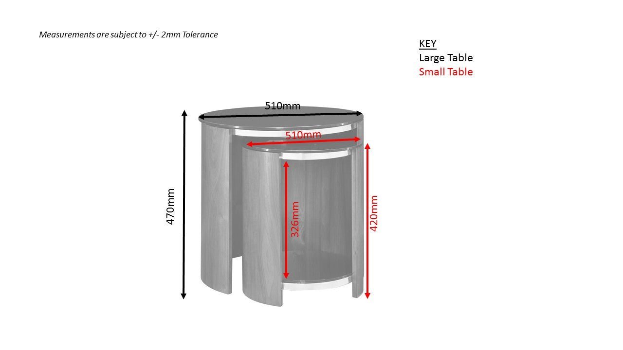 Large Table: Diameter 510mm x H470mmPerfect for entertaining guests or everyday use, these versatile tables can be used separately throughout your room or kept together as a stylish focal point. The durable construction ensures years of reliable use, while the elegant design makes them suitable for both modern and traditional interiors.