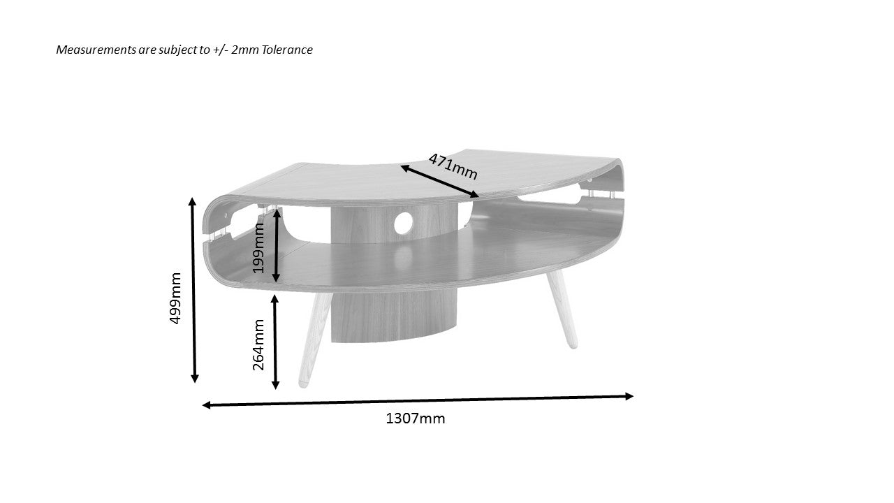 Real Wood Veneer - Solid Wood Spindle Legs - Suitable For TV's up to 50" - Cable Management - Matching Furniture Available - Fits perfectly into corners and alcoves - Adjustable Feet