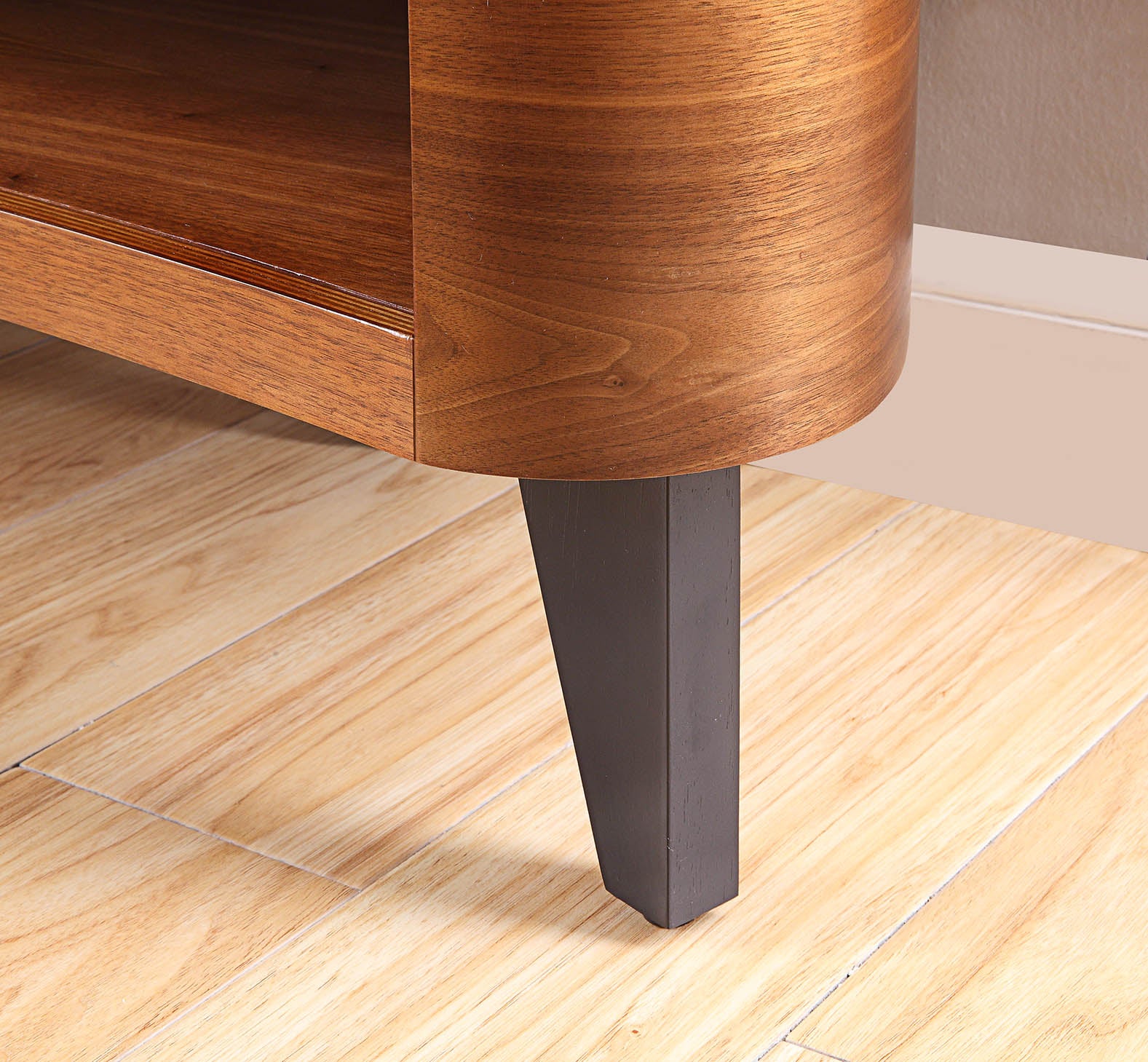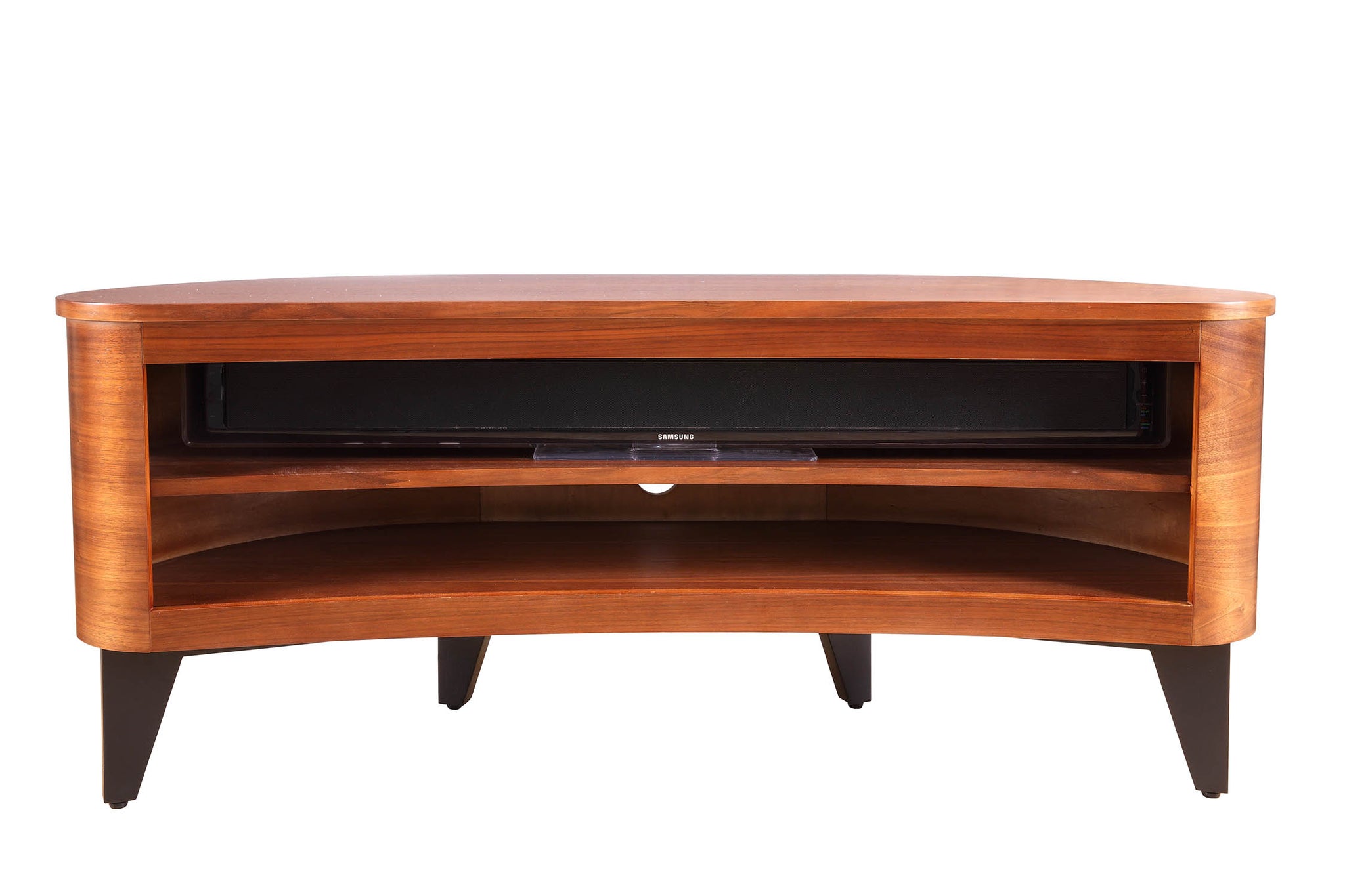 The JF709 Curve TV Stand is a beautiful addition to the San Francisco Collection. With a sweeping curve design, this elegant piece of furniture will look stunning in any room in the house. The shape of this stand makes it ideal for use in corners, and it has ample room on the two shelves for all your AV equipment. The fully enclosed back ensures a neat and tidy appearance and features cable management on both levels. The contrasting black legs have height adjustable feet to compensate for any uneven floors.
